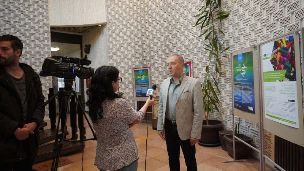 During the Conference, as a side event, the “Coffee With Journalists” was organized in order to disseminate information on Project and the Conference to the media, where several interviews and reports were recorded and published latter. One representative of the lead partner also had and interview on local FKMS Radio. During the Conference, exhibition of partners’ posters with a good examples on circular economy was organized in main hole of the Culture Center.